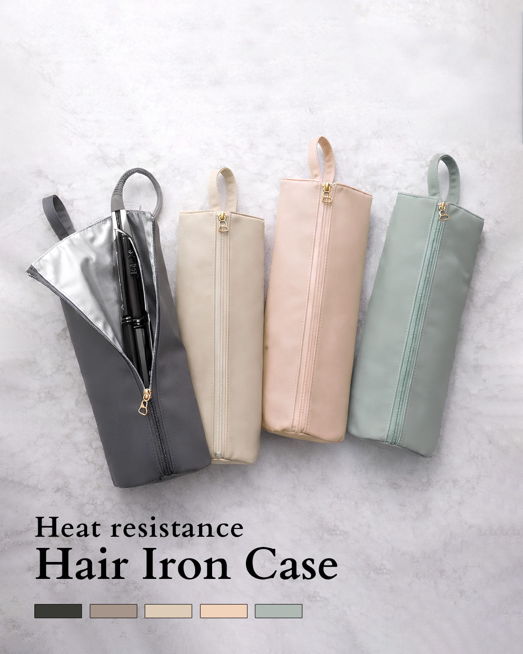 使い終わったヘアアイロンを熱いまま収納できる、耐熱温度300℃素材のヘアアイロンケースです。