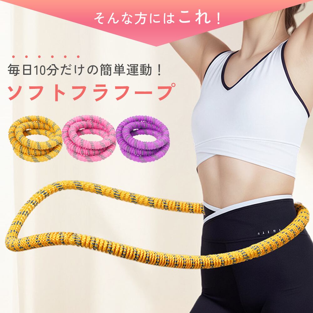 自宅で手軽に運動を楽しめる、ソフトタイプのフィットネスフラフープです。