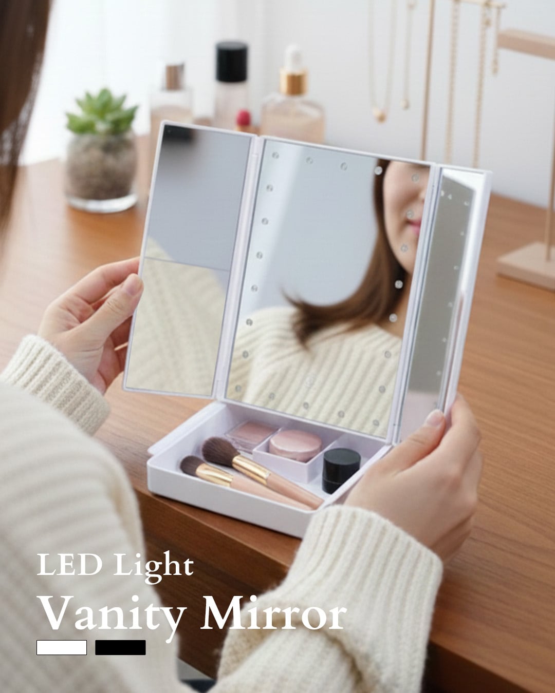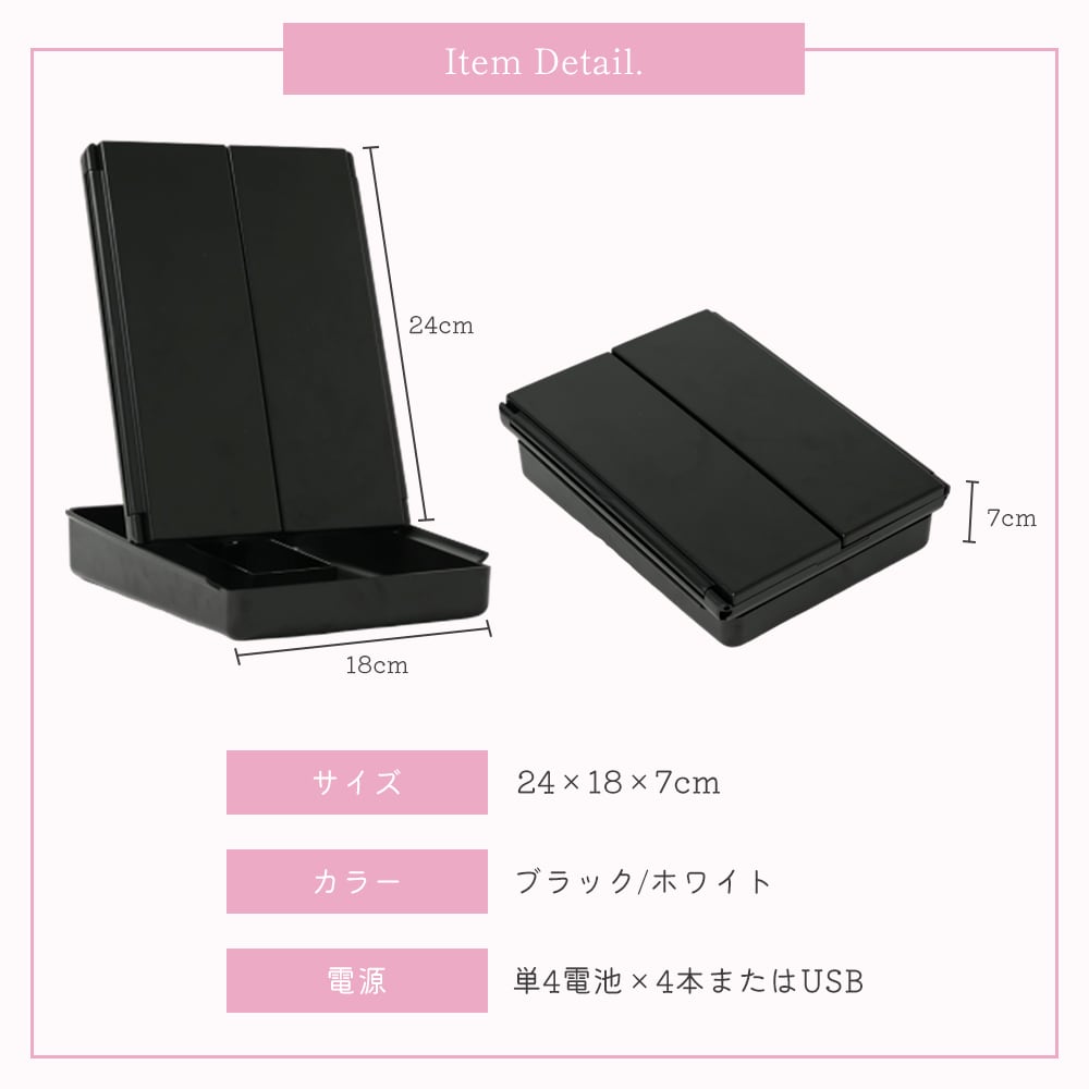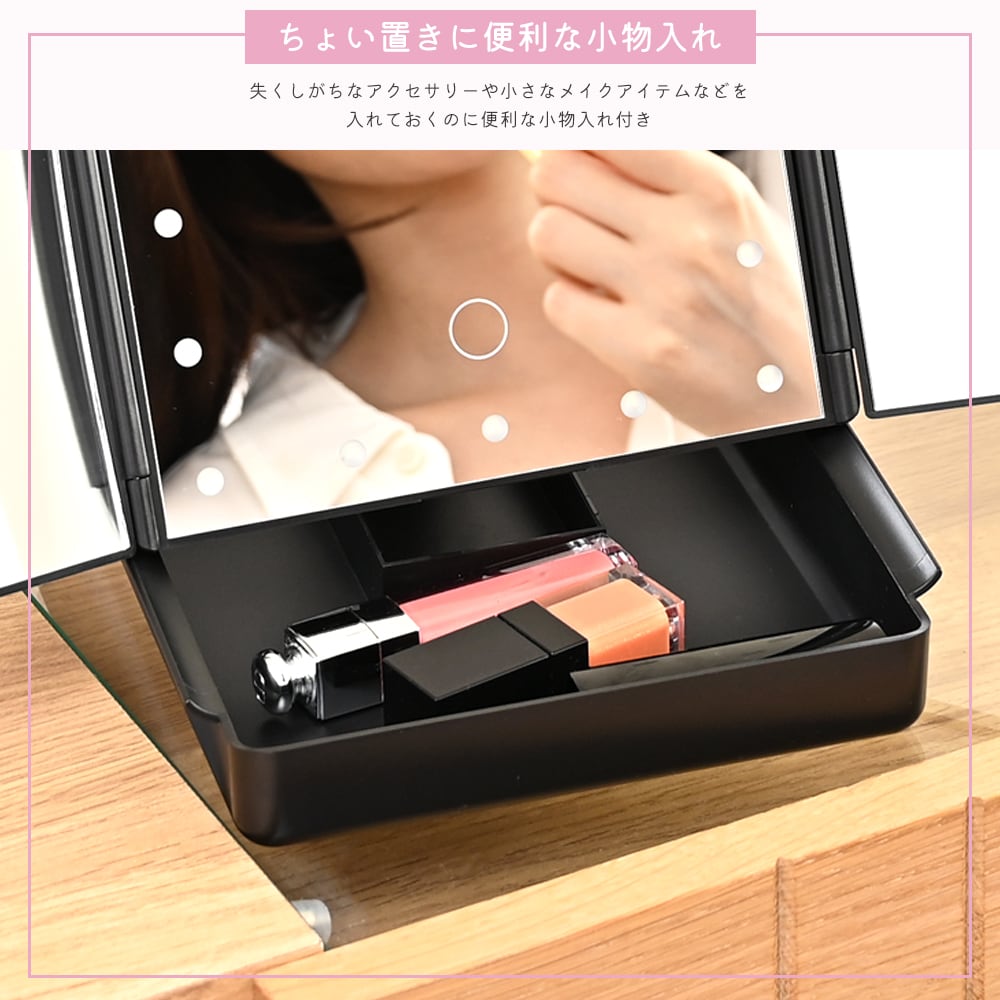 LEDライト付き三面鏡。